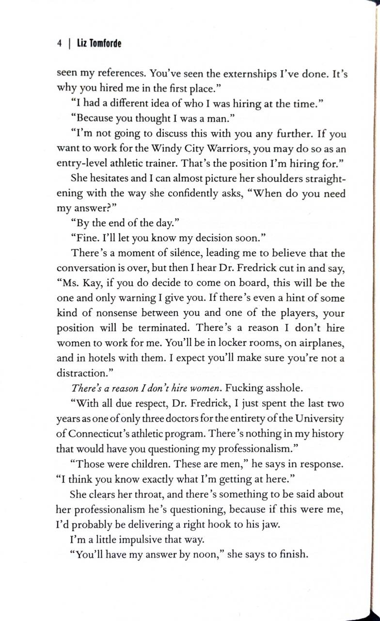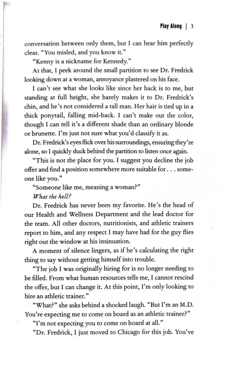 Kennedy is the only woman on the medical staff for the Windy City Warriors. After years of dealing with a sexist boss, she has one goal: maintain a perfect professional reputation for her final season to land her dream job.
