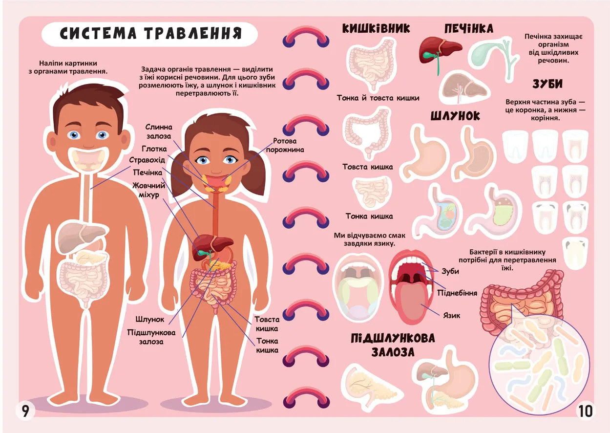 Людське тіло приховує багато таємниць, які ми хочемо тобі розкрити. Ти зрозумієш, чому виникає біль, що відбувається з їжею в животі та звідки беруться діти. Хутчіш зазирни в книжку й дізнайся, що знаходиться всередині твого організму та як він працює! Фантазуй, доповнюючи малюнки відповідними картинками. Тобі стануть у пригоді понад 300 меганаліпок! Використовуй як підказку зазначені поруч із ними номери сторінок.