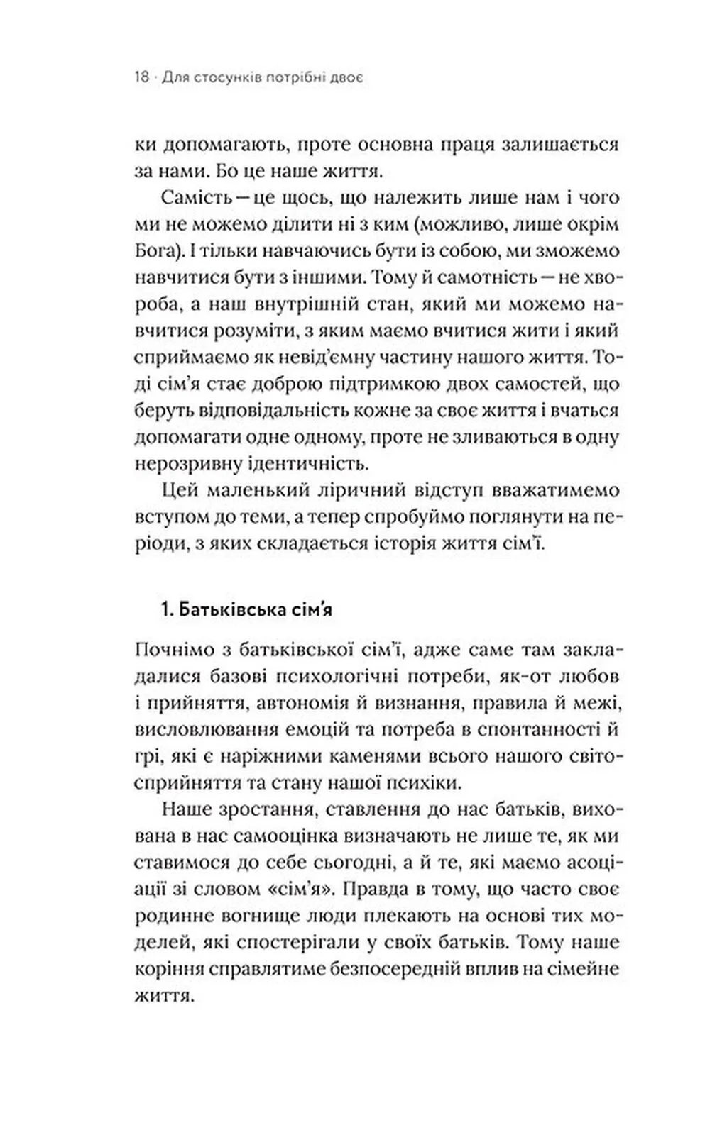 Для стосунків потрібні двоє — це не збірка магічних порад чи універсальних рецептів щастя. Відомий психолог-психотерапевт Володимир Станчишин нагадує: кожна пара торує власний унікальний шлях. Незалежно від того, чи це офіційний шлюб, чи партнерські взаємини, чи виховуєте ви дітей, чи обрали життя без них — ця книга про те, як залишатися людиною поруч із іншою людиною, зберігаючи повагу та близькість.
