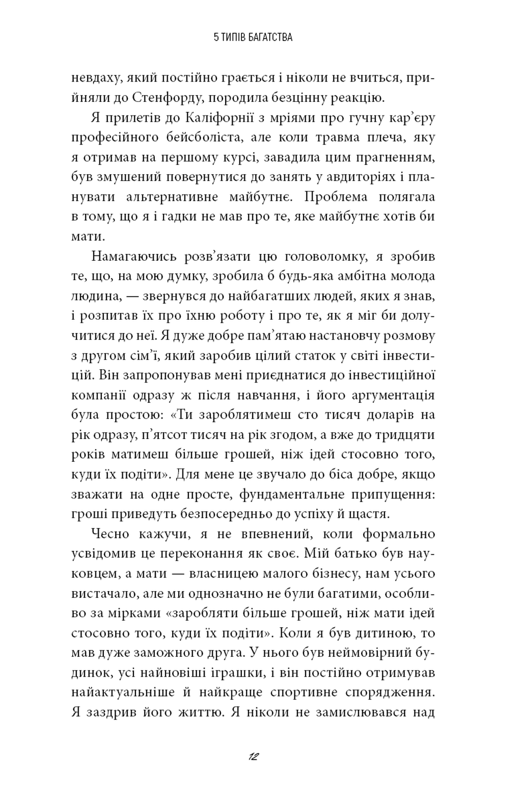 5 типів багатства. Трансформаційний путівник життям вашої мрії — це книга, яка докорінно змінює уявлення про те, що означає бути «багатим». Сахіл Блум, відомий мислитель та підприємець, кидає виклик застарілій установці, що гроші є єдиним мірилом успіху. На основі глибоких досліджень та тисяч інтерв'ю він пропонує нову архітектуру життя, де фінанси — лише одна з опор справжнього достатку.