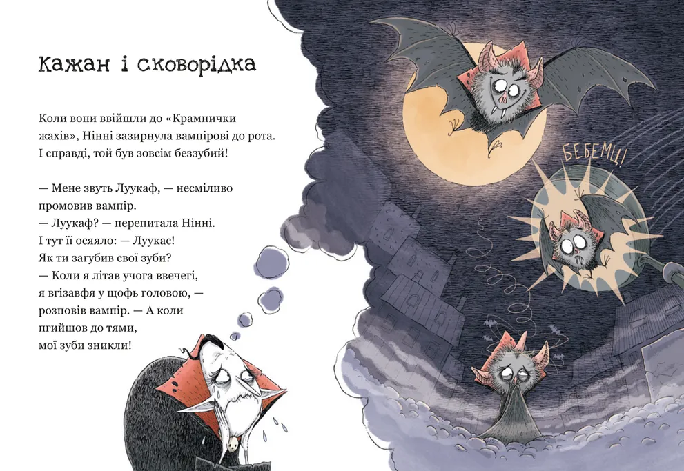 Коли у «Магазині морозива» дівчинка зустрічає беззубого вампіра Луукаса, вона вирішує допомогти йому розгадати загадку зниклих зубів. Та з кожною новою зачіпкою знайти слизького злодія стає все важче! Разом із Дідусем-продавцем, Луукасом та привидом на ім’я Перста, Нінні поринає у захопливе розслідування, де привиди — не завжди страшні, а вампіри — вельми зворушливі. Але що, як злодій — зовсім поруч і дуже добре маскується?