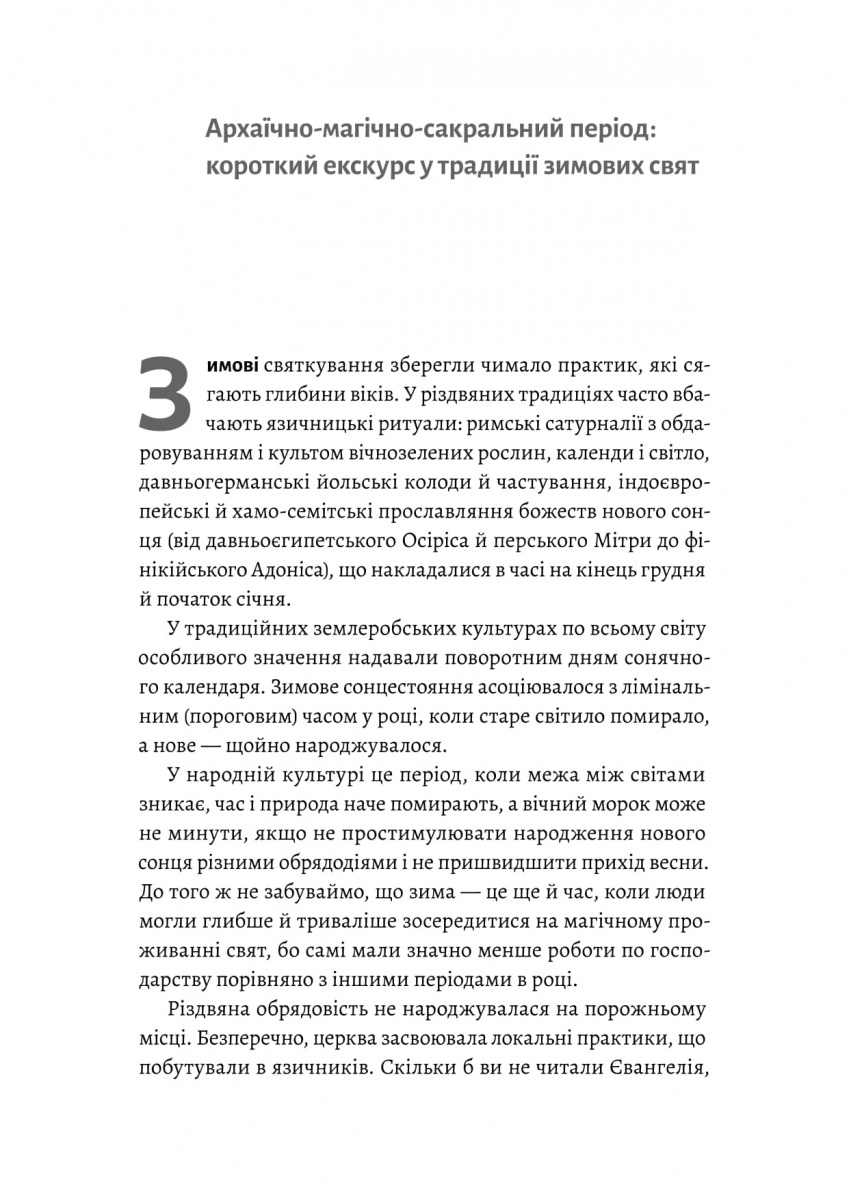 Навколо круговерті зимових свят, окрім магічності, завжди присутні питання й історичної складової. Яких символів сповнене традиційне й сучасне українське Різдво? Чому ми чекаємо Миколая і який він має зв'язок із Сантою? Хто такий Дід Мороз і чи правда, що він — повністю продукт радянської культури? Коли українці почали прикрашати ялинку і чи можна казати, що вона заступила собою дідух? Як співіснували практики святкування Різдва у містах і в селах? Як формувалися нові канони свята під впливом радянської влади й у часи незалежності?
