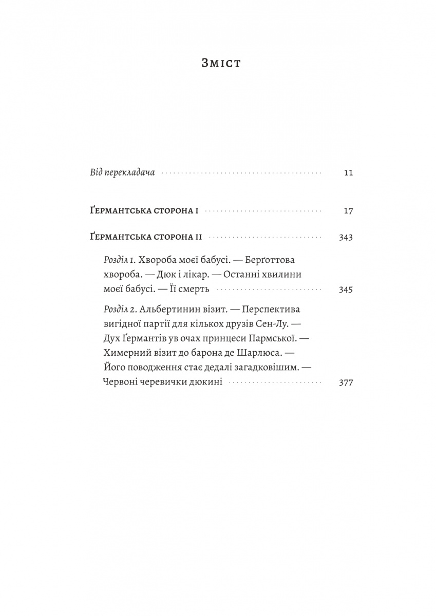 Після ніжних спогадів про перше кохання і поетичних літніх марень Марсель Пруст занурює читача у тривожний світ аристократії. «Ґермантська сторона», третя книга зі знаменитої семитомної епопеї, блискуче й водночас іронічно досліджує поезії снобізму і мінливі чари світського життя. Молодий оповідач відкриває для себе витончені салони й загадкову постать дукині Ґермантської. І саме тут, на «потертому коцику» її палацу, мрії юності вперше стикаються із суворою буденністю, а сяйливі імена й герби втрачають ореол романтики, оголюючи ілюзії й гірке розчарування.