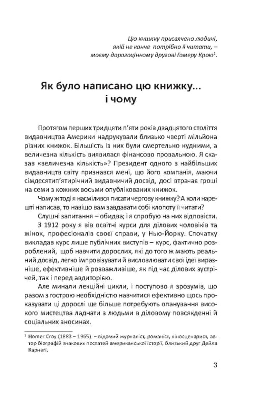 Дейл Карнегі — американський психолог, педагог та письменник, засновник курсів із самовдосконалення, ораторського мистецтва та навичок міжособистісного спілкування. Його методики допомогли мільйонам людей подолати страхи, досягти кар'єрних висот та знайти гармонію в особистому житті.