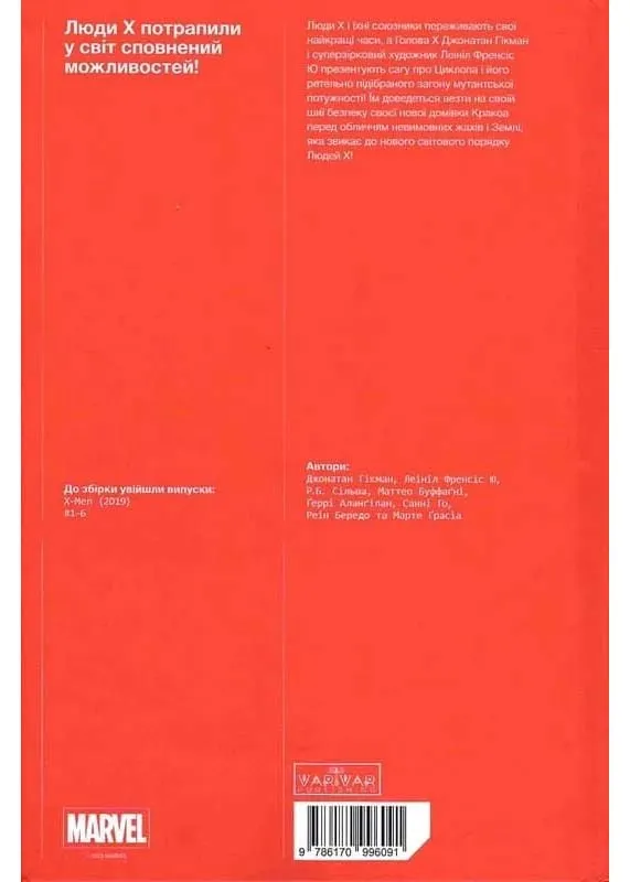 Люди Х. Том 1 — це фундаментальна праця від архітектора сучасного всесвіту Marvel Джонатана Гікмана та візуального майстра Леініла Френсіса Ю. Мутанти більше не переховуються в тіні — вони заснували власну державу на живому острові Кракоа і диктують умови всьому світу. Це історія про тріумф, нову політику та небезпеки, що чатують на межі нового світового порядку, де Люди Х нарешті стали господарями своєї долі.