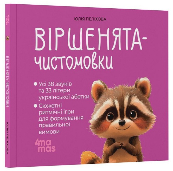 «Віршенята-чистомовки» — це чудово ілюстрована добірка авторських віршиків — ритмічних ігор здебільшого із жартівливим сюжетом, спрямованих на тренування та розвиток артикуляційного апарату малюків віком від 3 років.
