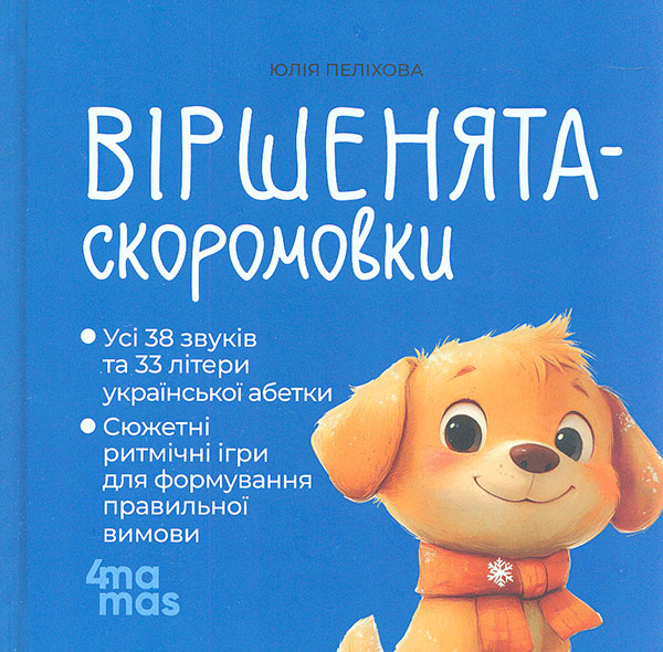 33 літери української абетки; сприятимуть диференціації (розрізненню) певних звуків, збагаченню словникового запасу; ознайомлять із правильними назвами літер тощо. Завдяки зручному формату книжки віршенята завжди будуть напохваті в матусі, супроводжуючи її з малюком удома й під час прогулянок, очікувань у черзі, подорожей тощо.