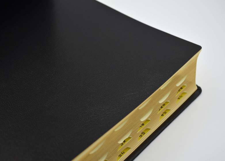 Біблія оформлена у обкладинці з замінника шкіри чорного кольору з елегантним золотистим тисненням. У комплекті є міцна жовта коробка, яка захистить книгу від пилу, вологи та механічних ушкоджень, надаючи їй презентабельного вигляду і довговічності.