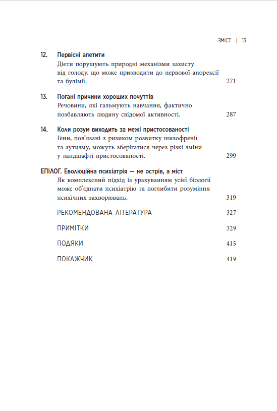 Хороші причини для «поганих» почуттів — це фундаментальна праця професора Рендольфа Нессі, одного із засновників еволюційної медицини. У світі, де тривожність, депресія, панічні атаки та ПТСР стали ледь не нормою, автор ставить незручне питання: чому природний відбір залишив нашу психіку такою вразливою? Нессі пропонує змінити кут зору: замість того, щоб сприймати негативні емоції як помилку природи, він пояснює їхню корисність для виживання наших предків. Ця книга — міст між психіатрією та еволюційною біологією, який допомагає зрозуміти, де закінчується захисна реакція організму і починається справжній розлад.