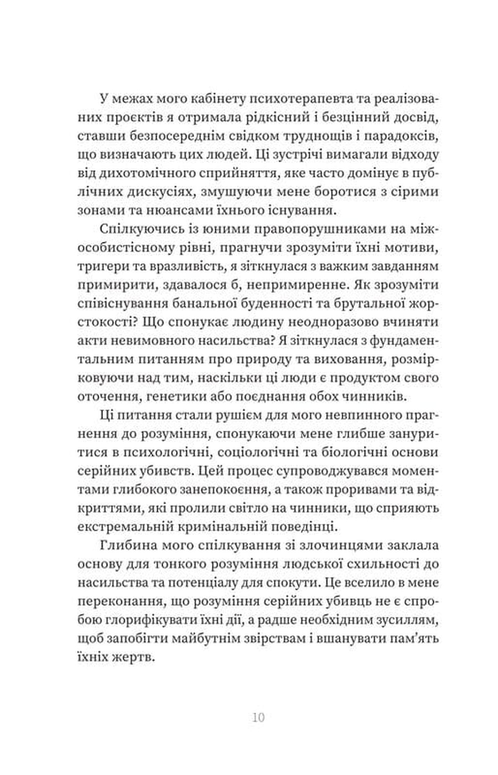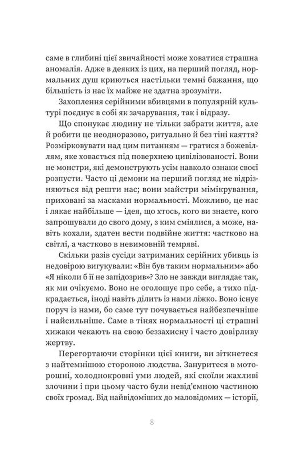 Видання стане цінним надбанням для шанувальників кримінальної психології, жанру true crime та всіх, хто прагне зрозуміти складну структуру причин, що стоять за найжахливішими вчинками людства.