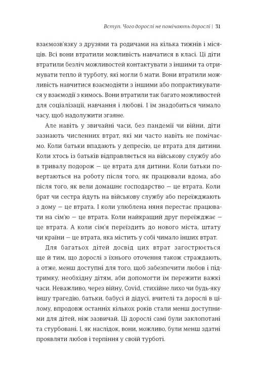 - Створення безпечного простору: книга вчить, як вибудувати довіру та дозволити дитині висловити свій біль без страху бути незрозумілою.