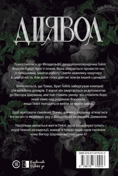 Повертаючись до Філадельфії, двадцятичотирирічна Гейлі Воррен будує прості плани. Вона збирається провести час із близькими, знайти роботу і зняти невелику квартиру в центрі міста. Але доля готує для неї зовсім інший сценарій. Виявляється, що Томас, брат Гейлі, заборгував компанії пів мільйона доларів. У відчаї він звертається за допомогою до Віктора Шармана, але той ставить умову: він сплатить борг, який тяжіє на родині Ворренів, якщо Гейлі погодиться вийти за нього заміж. Щоб врятувати сімейний бізнес, дівчина змушена зіткнутися віч-на-віч із людиною, яку у Філадельфії називають Дияволом. Наскільки зміниться життя Гейлі, коли вона переступить поріг темної резиденції, маючи в голові лише одне питання: чому Віктор Шарман вибрав саме її?