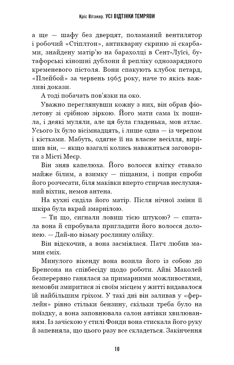 Усі відтінки темряви — це монументальний роман Кріса Вітакера, який майстерно балансує на межі жанрів. Події розгортаються у 1975 році в Америці, що переживає злам епох, проте в маленькому містечку Монта-Клер час ніби зупинився через страх. Це не просто історія про пошуки серійного вбивці, а глибока драма про те, як один вчинок може назавжди змінити долі багатьох людей. Вітакер створює унікальний літературний ландшафт, де темрява людської душі стикається зі сліпучим світлом надії.