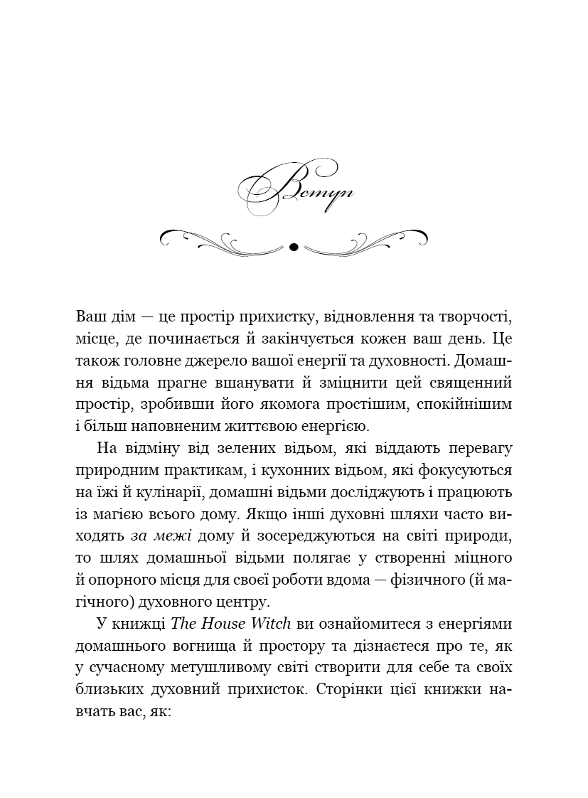 House Witch. Повний путівник зі створення магічного простору для оселі й домашнього вогнища — це нова захоплива праця від Ерін Мерфі-Хіскок, авторки світових бестселерів «Green Witch» та «Witch's Self-Care». Ця книга створена для тих, хто відчуває, що дім — це не просто стіни, а важливе продовження нашої особистості. Авторка пропонує унікальний підхід до домашньої магії, де щоденні рутинні справи перетворюються на духовні практики. Ви дізнаєтеся, як наповнити кожен куточок своєї квартири чи будинку позитивною енергією, як готувати їжу, що живить не лише тіло, а й душу, та як проводити прості, але дієві ритуали для захисту й очищення простору. Це посібник про те, як жити в гармонії з місцем, де ви будуєте свою долю, закликаючи на допомогу енергію домашнього вогню та кухонних богинь.