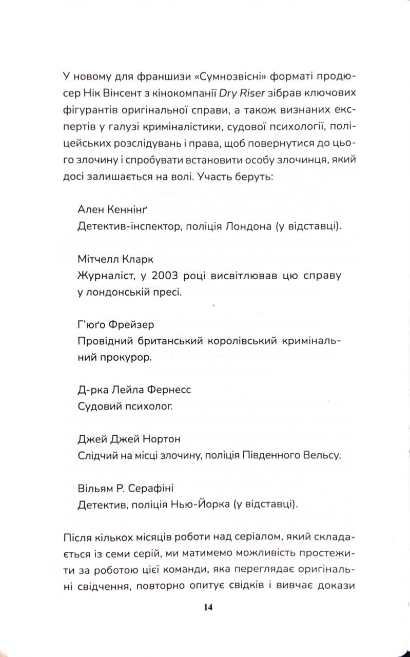 - Архівні матеріали: копії поліцейських звітів та експертних висновків двадцятирічної давнини.