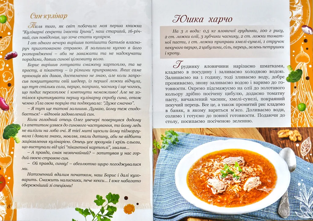 У своїй новій книзі автор ділиться випробуваними родинними переписами корисних та смачних страв. Тут – і перші та другі страви, і салати, і солодке печиво, й домашня консервація. А ще – дотепні й повчальні родинні історії на кулінарну тематику.Видання для всіх, хто любить готувати та цінує домашній затишок.