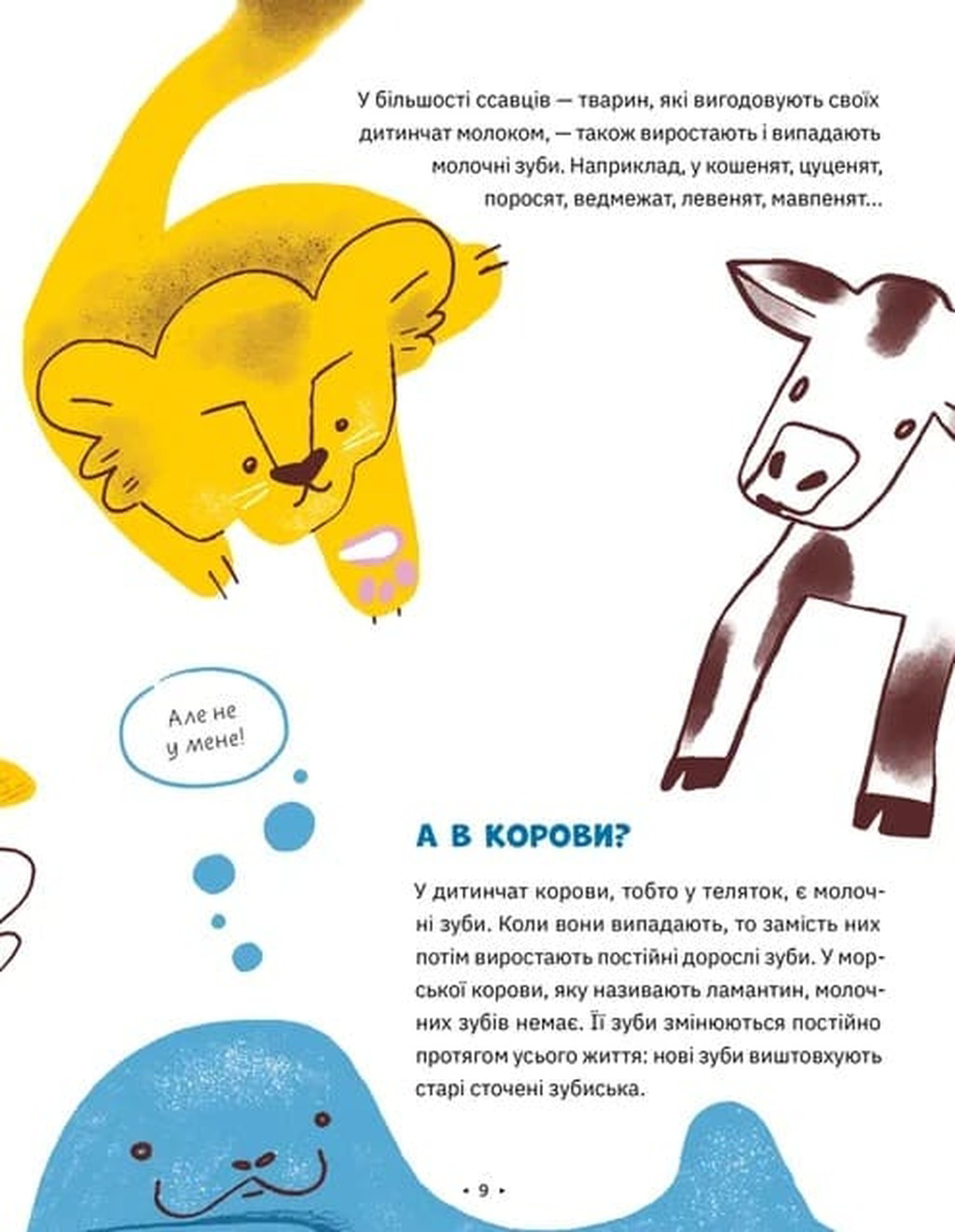 Зуби, зубиська і зубенята — це не просто посібник із гігієни, а справжня енциклопедія дивовижних фактів від Марії Артеменко та ілюстраторки Дарини Клочко. Видання створене для допитливих дітей, які люблять ставити складні запитання та шукати на них несподівані відповіді. Книга розкриває секрети зубів не лише людей, а й тварин, проводячи паралелі між природою та історією людства. Читачі дізнаються про те, як змінювалися засоби для догляду за ротовою порожниною протягом віків — від звичайних гілочок до сучасних ультразвукових пристроїв. Це видання перетворює щоденне чищення зубів на свідомий і цікавий процес, наповнений знаннями про біологію, фізику та навіть космонавтику.