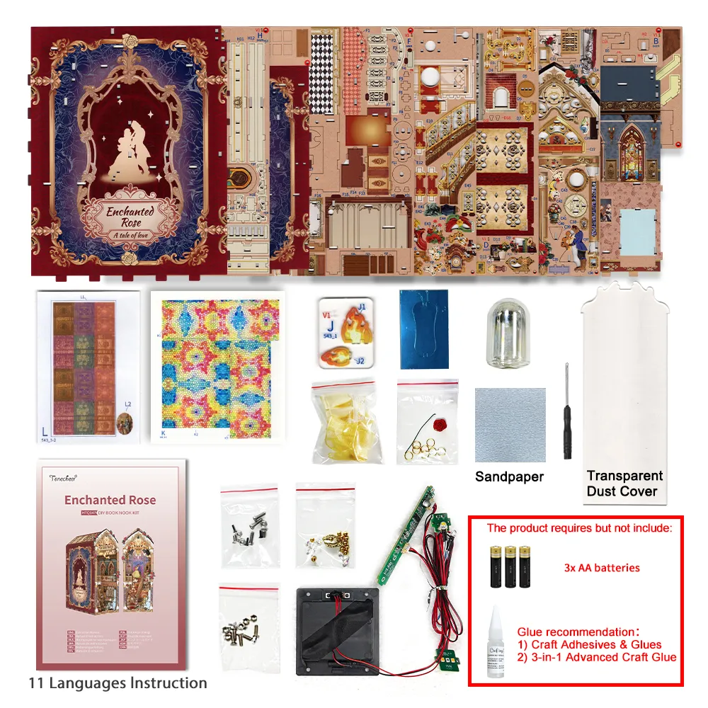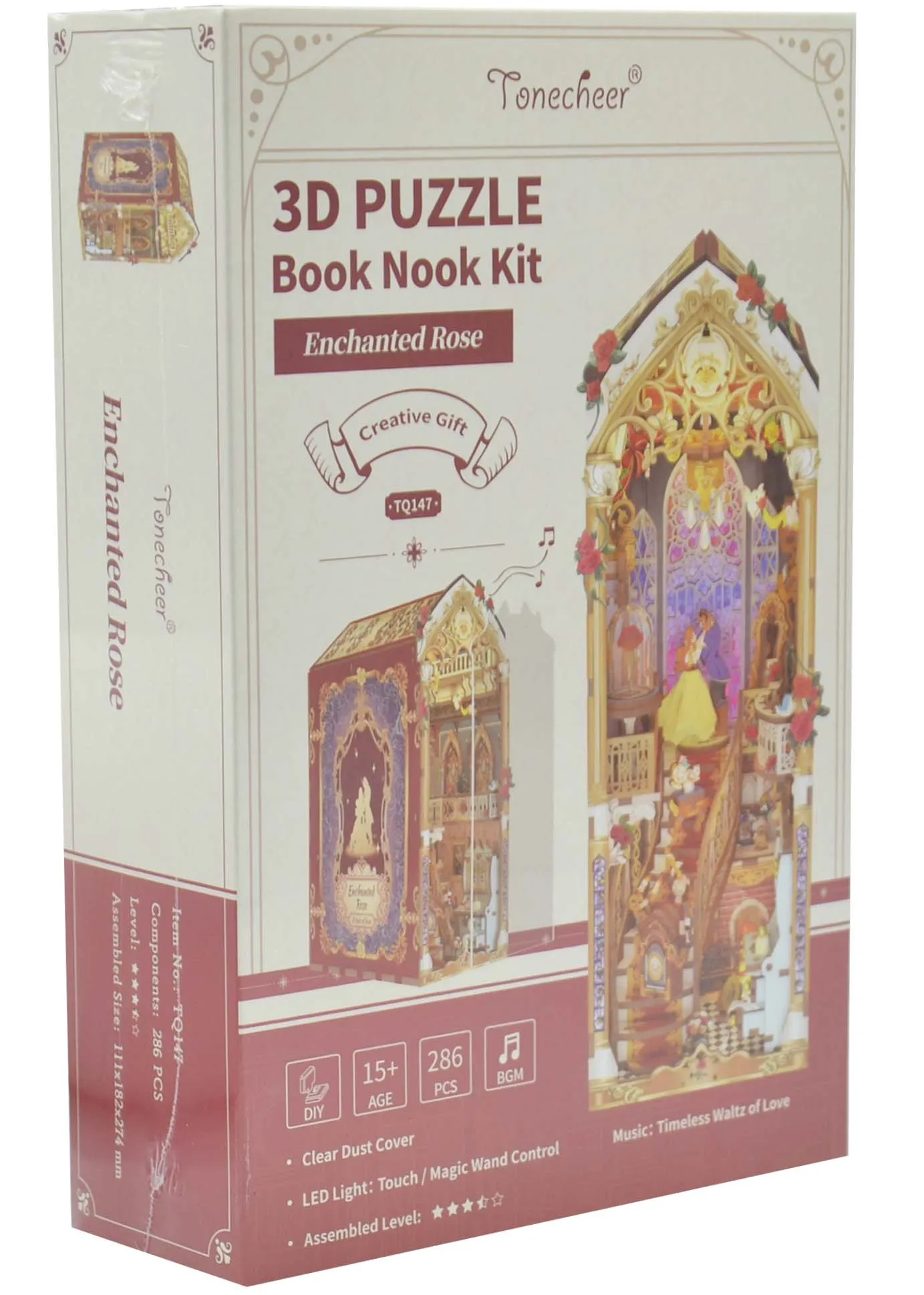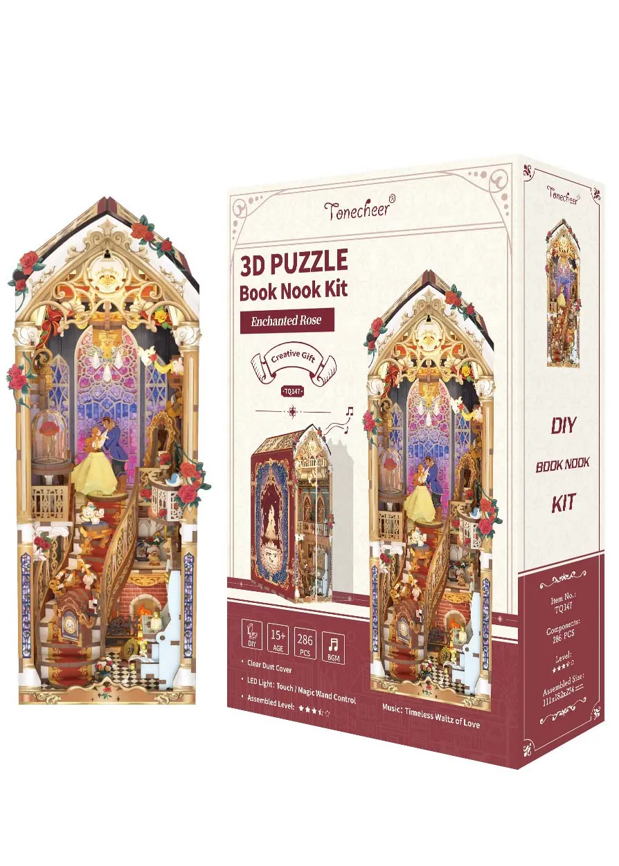 Book Nook Enchanted Rose від Tonecheer — це надзвичайний 3D-конструктор, натхненний класичними казковими сюжетами. Цей набір дозволяє створити власноруч вишукану інтер’єрну діораму, яка поєднує в собі візуальну красу, м’яке світло та чарівну мелодію, перетворюючи вашу книжкову полицю на справжній витвір мистецтва.