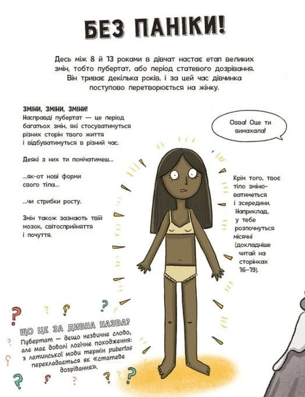 Без паніки: ти просто дорослішаєш! Путівник для дівчат від відомої авторки Анни Клейборн — це книга, яка має бути на полиці кожної дівчинки, що стоїть на порозі підліткового віку. Коли тіло починає змінюватися, а емоції нагадують американські гірки, виникає безліч запитань, які іноді ніяково поставити дорослим. Цей путівник створений для того, щоб розвіяти всі страхи та сумніви. Чому ростуть груди? Що таке місячні та як до них підготуватися? Чому настрій змінюється по кілька разів на день? Клейборн дає чесні, науково обґрунтовані та водночас дуже прості відповіді на ці та багато інших запитань. Книга охоплює теми від фізіологічного статевого дозрівання до догляду за шкірою, правильного харчування та психологічного комфорту, допомагаючи дівчаткам полюбити себе новими.