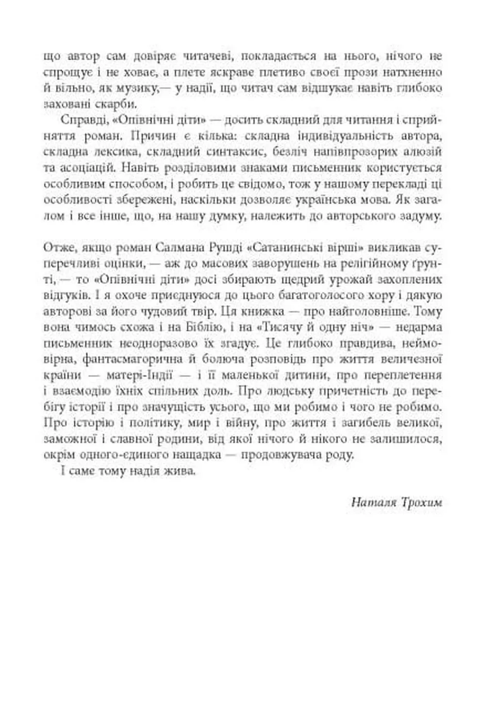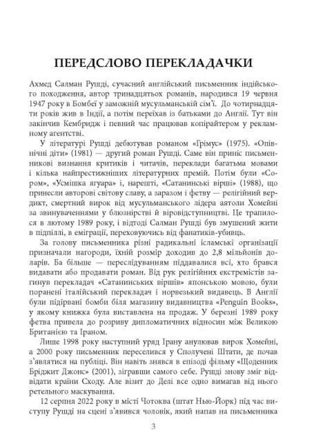 Роман Салмана Рушді — це універсальна оповідь про пошук ідентичності та ціну свободи, яка сьогодні, у часи боротьби за незалежність, по-особливому відгукнеться в серці кожного українського читача.
