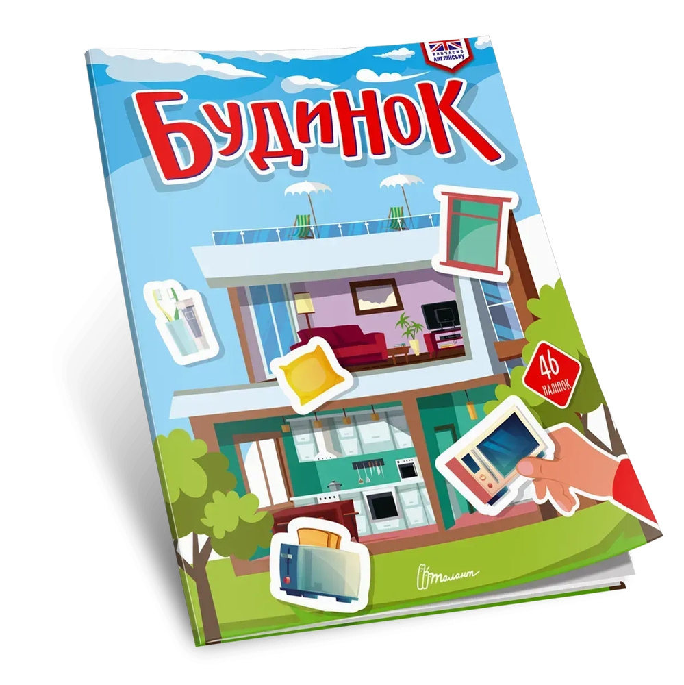Бажаєте, щоб ваша дитина знала англійську? Із цією яскравою книжкою-словничком вона легко вивчить базові слова: назви кімнат англійською мовою, що є на кухні, у вітальні, предмети у ванній кімнаті… Для правильної вимови незнайомих слів подано транскрипцію українською мовою, а яскраві наліпки зроблять процес навчання ще цікавішим.