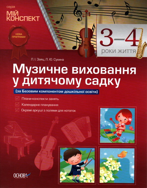 Посібник містить плани-конспекти із музичного мистецтва із вихованцями 3–4 років життя, календарне планування та багатий додатковий матеріал до занять (вірші, розвивальні ігри та вправи тощо).