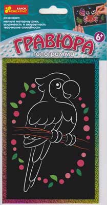 Царапай с удовольствием! Инструкция: 1. Сними защитную пленку. 2. Специальным штихелем (он входит в набор) по контурным линиям процарапай слой серой краски. 3. Протри изображение сухой мягкой салфеткой. 4. Гравюра готова! Она может украсить любой интерьер и послужить отличным подарком!