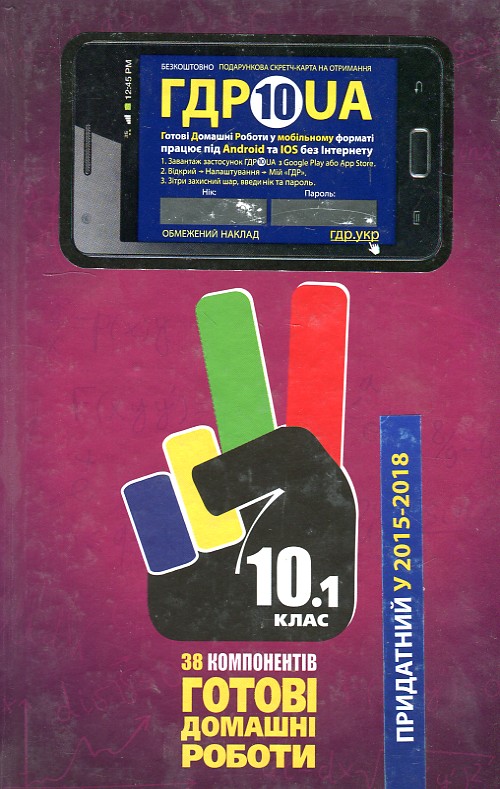 "ГДР: Готові Домашні Роботи. 10 клас" Новий випуск доповнено поясненнями до ходу виконання вправ та завдань. Універсальне видання для всіх шкіл України з українською мовою навчання, до складу якого ввійшли 24 підручника. Видання виходить у двох томах.
