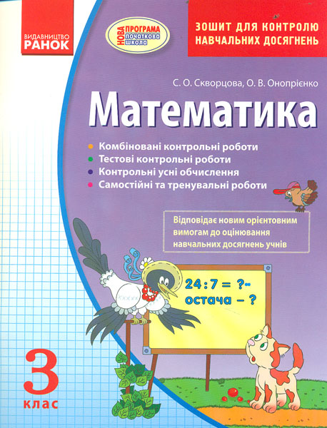 Посібник містить роботи для тематичного та поточного контролю навчальних досягнень учнів 3 класу з математики. Для здійснення тематичної перевірки в посібнику подано контрольні роботи у традиційній і тестовій формах, а також роботи для контрольних усних обчислень; для поточної перевірки — самостійні роботи й тренувальні завдання для усних обчислень.