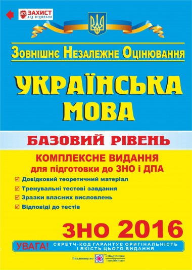ЗНО 2016 Українська мова. Комплексна підготовка до ЗНО та ДПА БАЗОВИЙ РІВЕНЬ 2016