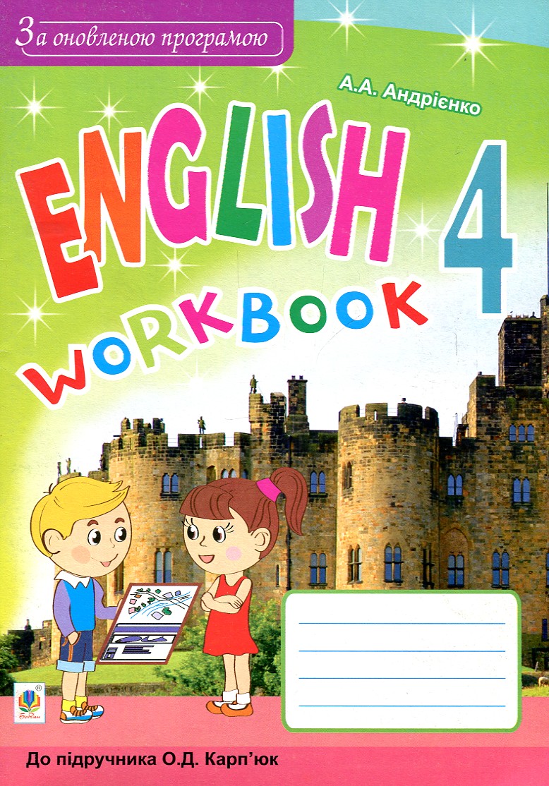 Робочий зошит з англійської мови для 4-го класу загальноосвітніх навчальних закладів укладено відповідно до чинної програми Міністерства освіти і науки України та підручника для 4-го класу (Карп’юк О.Д. Англійська мова : підручник для 4 класу загальноосвітніх навчальних закладів). Цікаві та захоплюючі завдання, розроблені відповідно до вікових особливостей третьокласників, сприятимуть виробленню навичок письма, збагаченню словникового запасу, закріпленню та систематизації знань школярів. Для учнів 4-го класу та вчителів англійської мови.