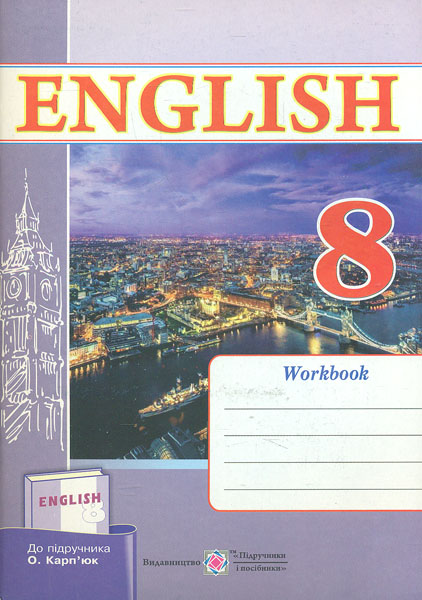 Робочий зошит з англійської мови укладено відповідно до чинної програми Міністерства освіти і науки України та підручника О. Карп'юк «Англійська мова. 8 клас». Різноманітність завдань, уміщених у зошиті, сприятиме формуванню комунікативної компетенції учнів 8-го класу, систематизації набутих знань, умінь і навичок, розвитку писемного мовлення, уваги, пам'яті та мислення. Для учнів 8-го класу та вчителів англійської мови.