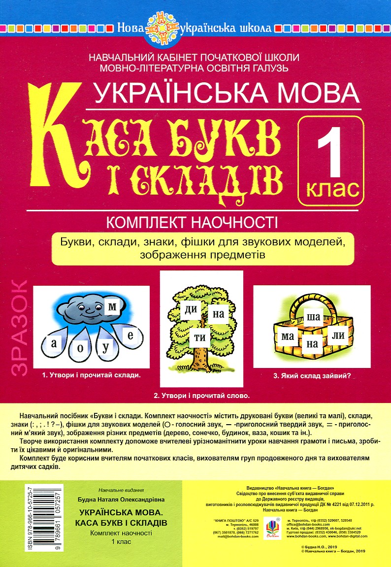 Українська мова. 1 клас. Каса букв і складів. Букви, склади, знаки, фішки для звукових моделей, зображення предметів. Комплект наочності. НУШ