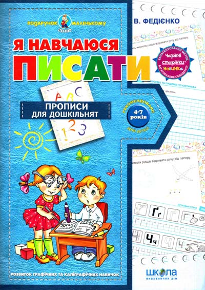 Посібники серії орієнтовані на дітей 4—6 років (залежно від рівня попередньої підготовки) та охоплюють практично всі напрямки підготовки до школи – буквар, математика, логіка, розвиток навичок читання та правильної вимови звуків, початкові знання про Землю та космос тощо. Посібники стануть дійсно найкращим подарунком для маленьких та допитливих майбутніх геніїв.Посібник з розвитку базових графічних та каліграфічних навичок допоможе як найкраще підготувати руку дитини до письма у школі, розвинути м’язову пам’ять руки та забезпечити розвиток дрібної моторики. Різноманітні вправи на обведення, штрихування та розфарбовування, написання фрагментів букв, цифр зміцнять м’язи кисті та пальчиків малюка, нададуть їм злагодженості та скоординованості.Для батьків, вихователів і педагогів.