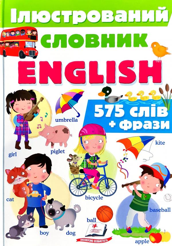 Чи можна вивчати іноземну мову з радістю і задоволенням? Звичайно, якщо маєш книжку з найвеселішими малюнками! Вона стане добрим другом усім малюкам, що починають учити англійську мову. У ній до кожної яскравої картинки є підписи, які складаються з англійського слова, транскрипції, підказ-ки-транслітерацм і, звичайно ж, перекладу українською мовою. У цій книжці можна знайти слова, які позначають навколишні предмети, членів родини, професії, тварин, види транспорту, природні явища, числа, дії, кольори та багато іншого.