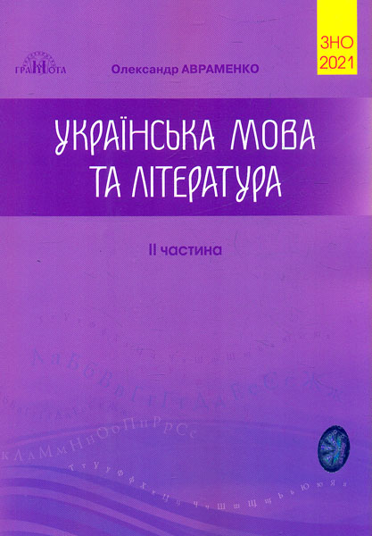 Збірник Авраменко частина 2 містить завдання в тестовій формі з української мови та літератури різного рівня складності для підготовки до ЗНО 2021. У виданні подано сім варіантів орієнтовного тесту у форматі ЗНО. Посібник укладено відповідно до чинних програм з української мови та літератури для закладів загальної середньої освіти й програми ЗНО. Завдання відповідають новому формату сертифікаційної роботи з української мови і літератури до ЗНО-2021.