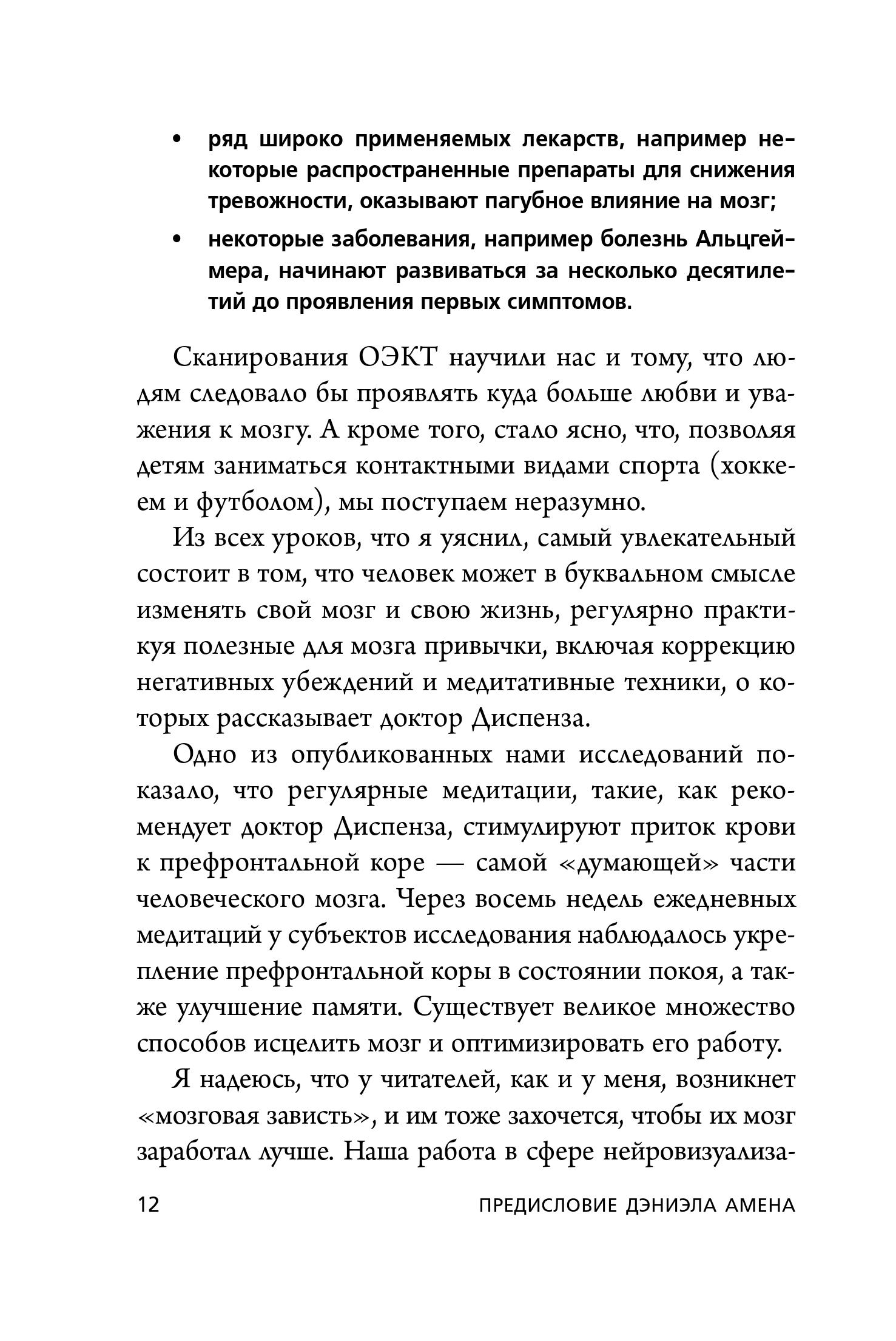 Мозг – это важнейший орган каждого человека. Взаимосвязь мышления, мозга и тела оказывает глубокое влияние на жизнь человека, которое многие недооценивают. В своей книге Доктор Джо Диспенза рассказывает о функциях и возможностях человеческого мозга и о перепрограммировании мышления с помощью научно обоснованных нейрофизиологических методик, основанных на простой, но могущественной истине: наше будущее зависит от наших сегодняшних мыслей.