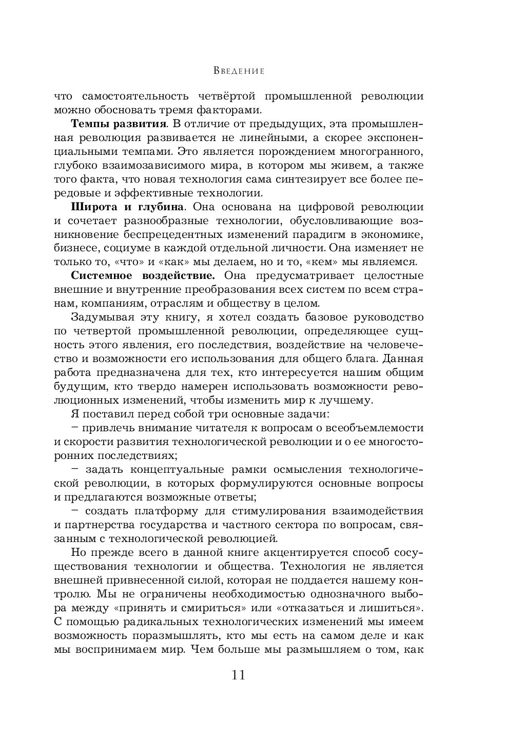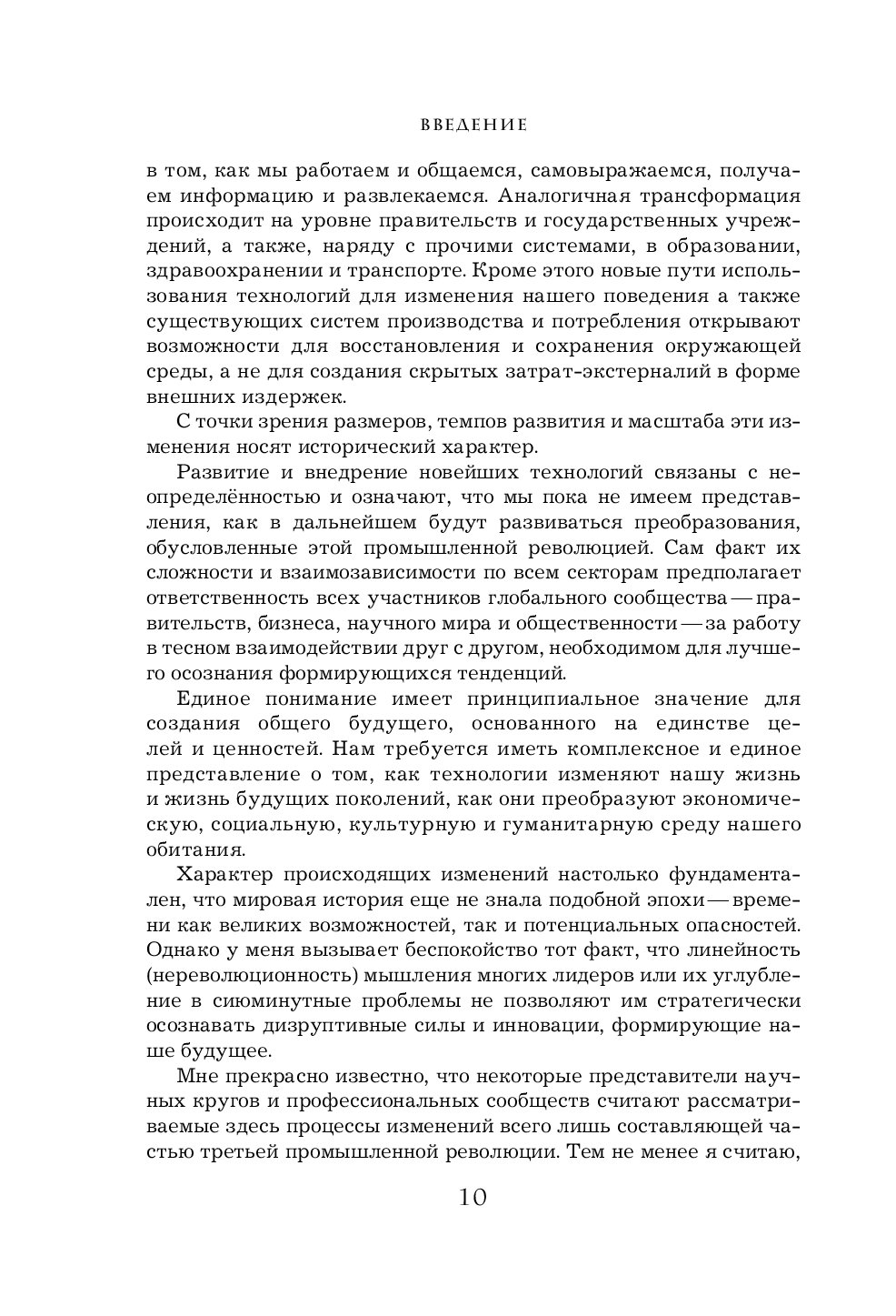 Мы стоим у истоков революции, которая фундаментально изменит то, как мы живем, работаем и общаемся друг с другом. По масштабу, объему и сложности четвертая промышленная революция не имеет аналогов во всем предыдущем опыте человечества. Нам предстоит увидеть ошеломляющие технологические прорывы в самом широком спектре областей, включая, искусственный интеллект, роботизацию, автомобили-роботы, трехмерную печать, нанотехнологии, биотехнологии и многое другое.
