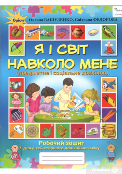 Навчальний посібник «Я і світ навколо мене» призначений для ознайомлення зі світом предметного і соціального довкілля через доступні для дитячого сприйняття поняття. Вихователі дошкільних закладів можуть використовувати його для організації занять з дітьми старшого дошкільного віку за освітньою лінією «Дитина в соціумі» Базового компонента дошкільної освіти (нова редакція), яка передбачає ознайомлення дітей із суспільним довкіллям, а батьки — для індивідуальних занять з дитиною вдома. Відповідає вимогам Базового компонента дошкільної освіти та чинних програм із розвитку, виховання і навчання дітей 5-6 років, рекомендованих Міністерством освіти і науки України.