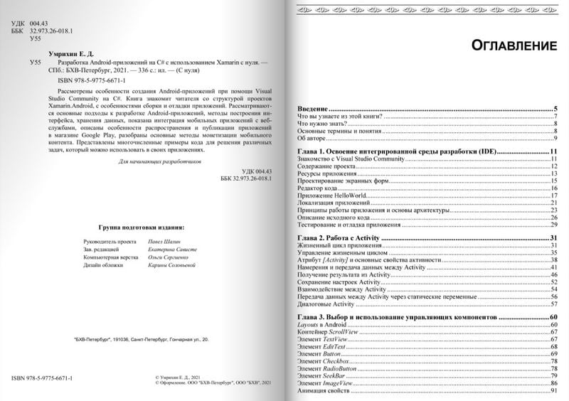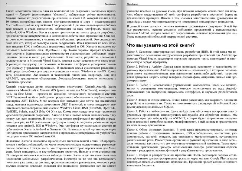 Книга знакомит читателя со структурой проектов Xamarin.Android, с особенностями сборки и отладки приложений. Рассматриваются основные подходы к разработке Android-приложений, методы построения интерфейса, хранения данных, показана интеграция мобильных приложений с веб-службами, описаны особенности распространения и публикации приложений в магазине Google Play, разобраны основные методы монетизации мобильного контента. Представлены многочисленные примеры кода для решения различных задач, который можно использовать в своих приложениях.