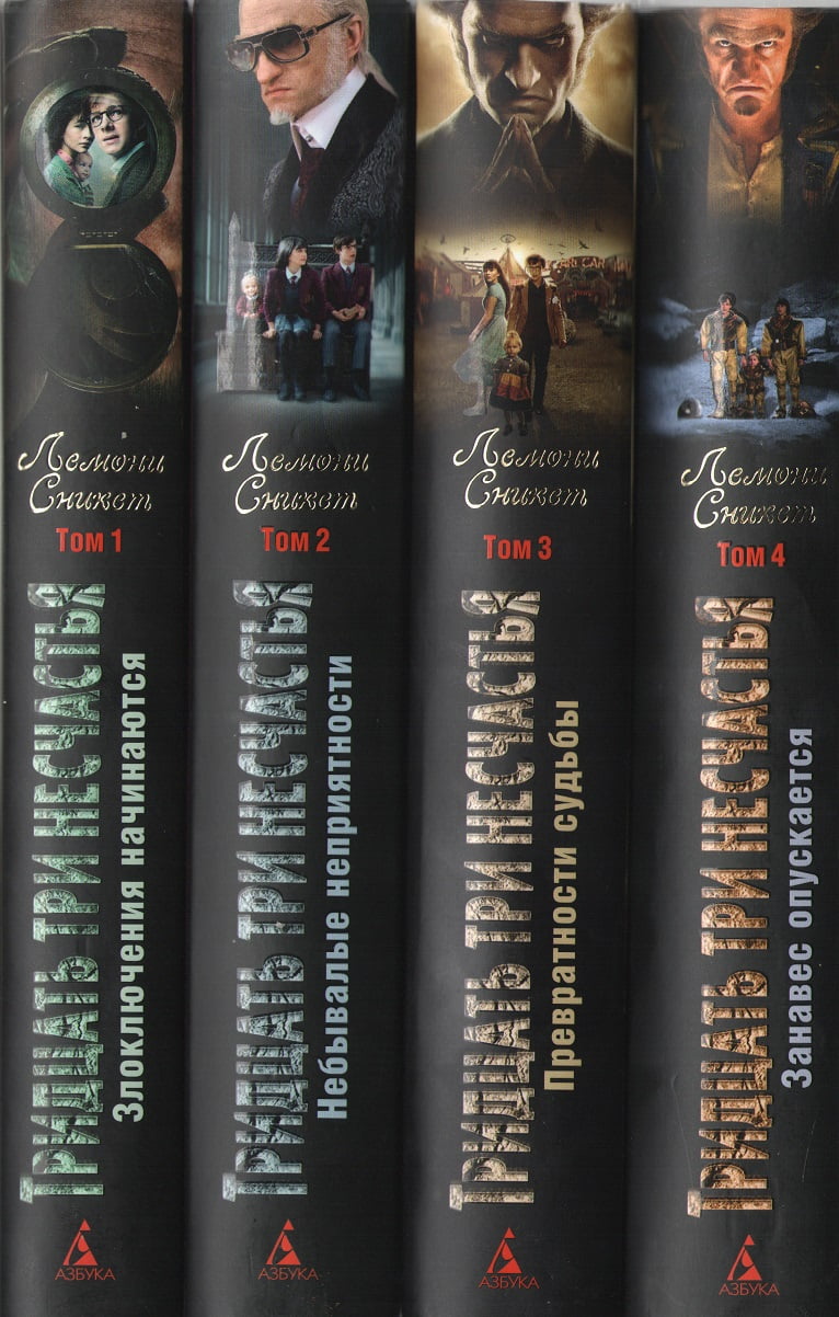 Может, тебе вовсе не стоит заглядывать под обложку книги Лемони Сникета? Ведь ты не найдешь в ней веселых и беззаботных историй. Совсем наоборот: тебя и юных героев повестей Вайолет, Клауса и Солнышко Бодлер ждут все тридцать три несчастья. Одним ничем не примечательным, но очень трагичным днем дети узнают, что их родители погибли. Желающих взять сирот к себе предостаточно, но самый ужасный среди всех — циничный злодей Граф Олаф. Он преследует Бодлеров, куда бы они ни направились. Беды сыпятся на головы детей, как конфетти из хлопушки. И только сила духа и взаимовыручка помогают Вайолет, Клаусу и Солнышку раз за разом выпутываться из неприятностей.