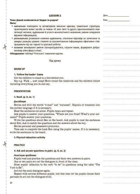 Посібник містить розробки уроків з англійської мови та орієнтовне календарно-тематичне планування для 4-го класу НУШ. Розподіл годин і тематика уроків відповідають змісту підручника О. Д. Карпюк «Англійська мова. 4 клас».Конспекти всіх уроків курсу (6 розділів, 102 уроки) розміщено на окремих аркушах. Вони містять методично грамотно оформлену «шапку уроку» та різноманітні завдання для розвитку наскрізних умінь. Також передбачено місце для записів учителя, що зробить розробку заняття по-справжньому авторською та заощадить час для планування й оформлення.Для вчителів, які викладають англійську мову в 4 класі Нової української школи.