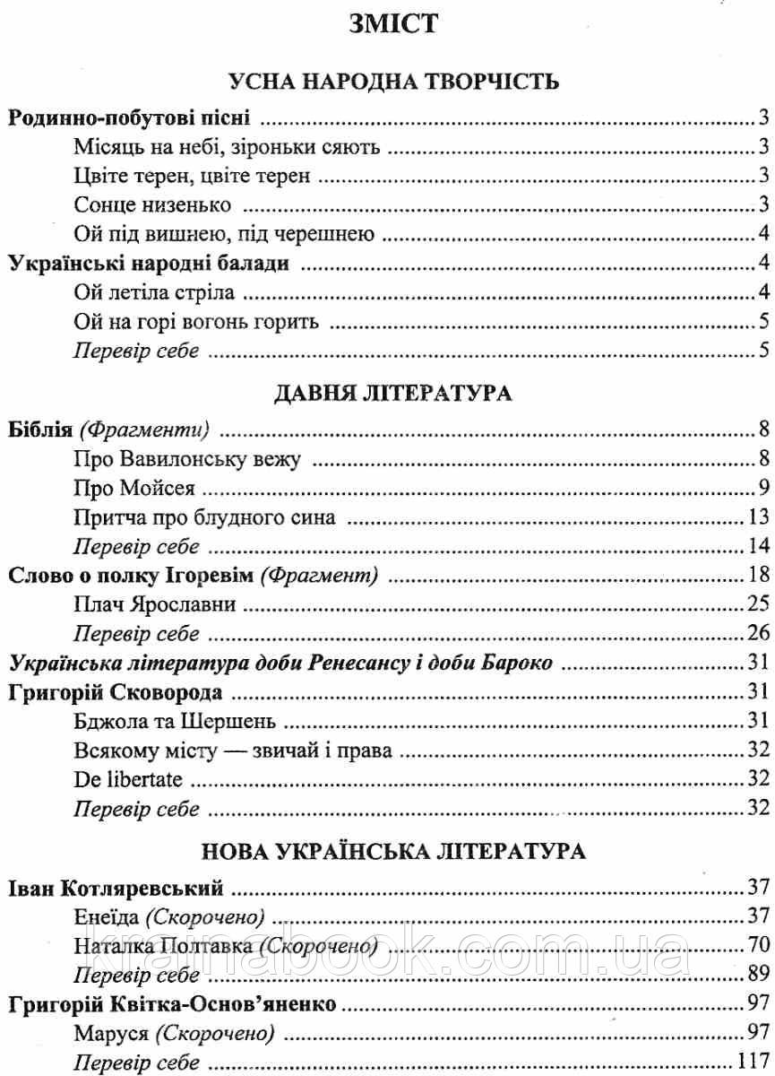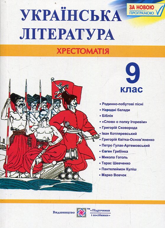 У посібнику-хрестоматії подано всі тексти літературних творів (прозові твори — скорочено), передбачені чинною програмою з української літератури (з усіма змінами), затвердженою Міністерством освіти та науки України. Тестові завдання відкритого і закритого типів рубрики «Перевір себе» допоможуть дев’ятикласникам визначити свій рівень оволодіння матеріалом з української літератури.