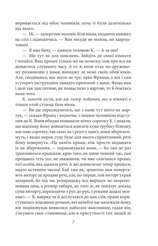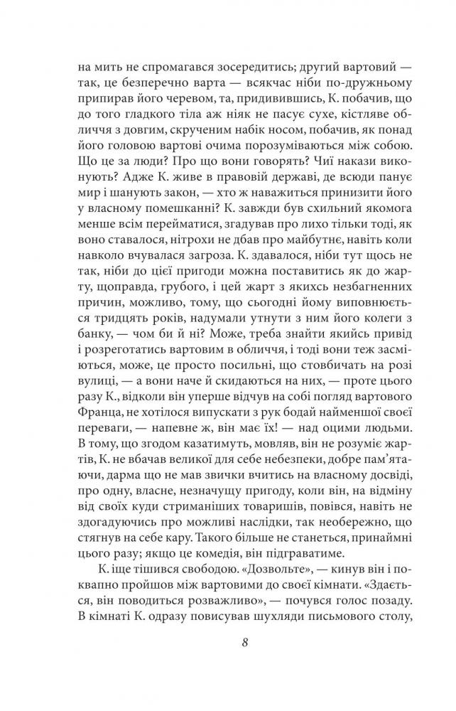 Філософський роман «Процес» є центральним твором літературної спадщини Франца Кафки. Він особливий ще й тим, що послугував сюжетом для постмодерного театру та кінематографа. Це історія Йозефа К., якого переслідує невідома сила правосуддя. Йозеф намагається з’ясувати, в чому його звинувачують і хто саме, поступово усвідомлюючи абсурдність цього таємничого правосуддя і марність спроб йому протистояти.