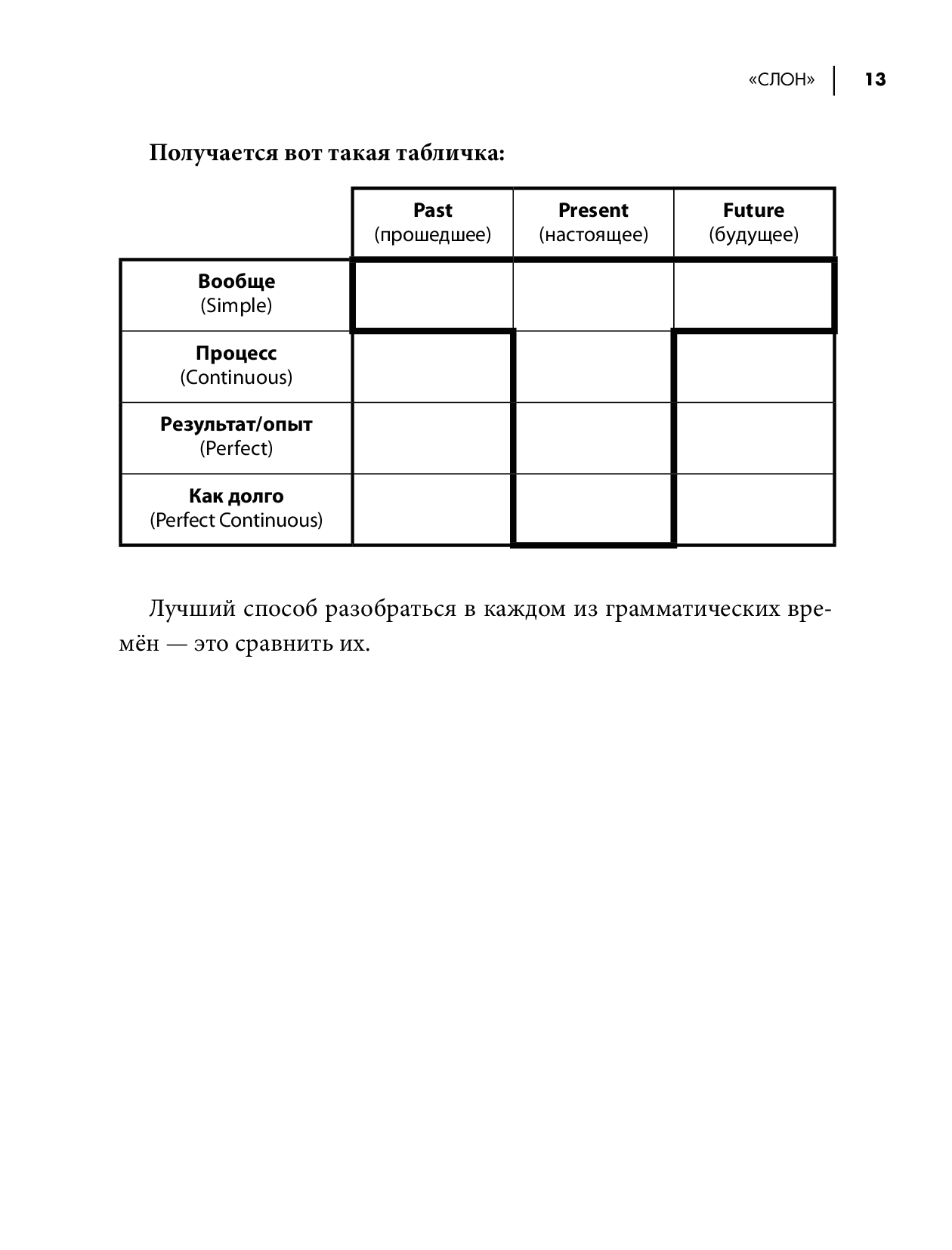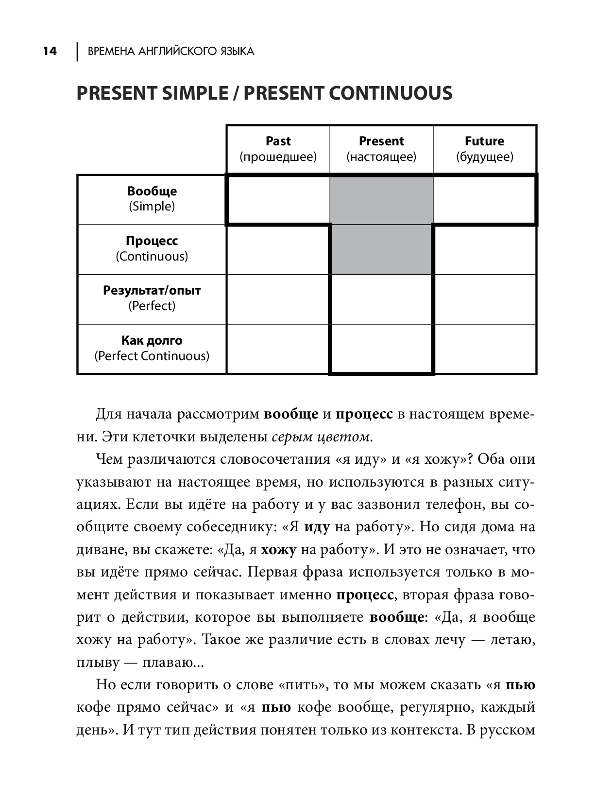 Читатели быстро освоят тему, найдут много полезных фишек и легко поймут логику образования времен. Книга также будет полезной и преподавателям. В ней подробно описаны интересные техники, которые можно использовать и на своих занятиях.