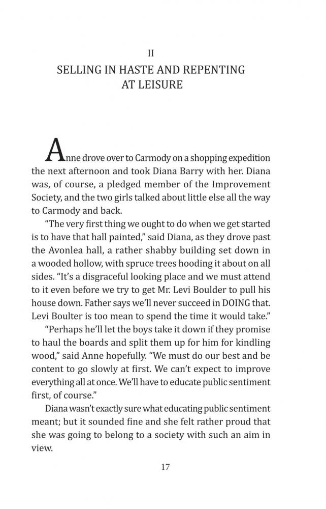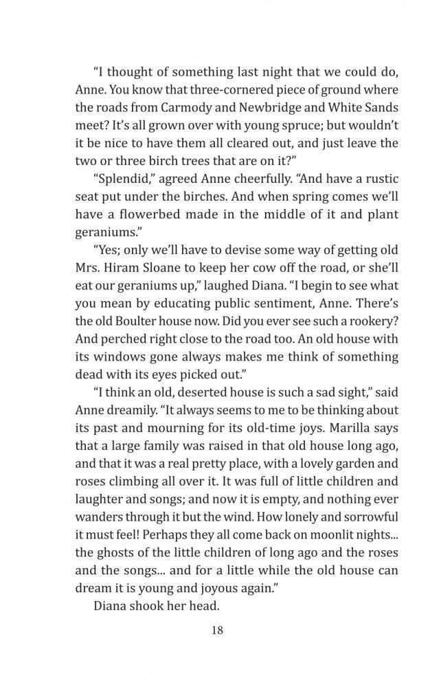 «Anne of Avonlea», a novel by Canadian writer Lucy Maud Montgomery (1874–1942), is a sequel to «Anne of Green Gables». After the Royal Teachers’ Seminary, Anne returned to Avonley to teach at a local school. She makes new friends, Anne experiences new adventures and suddenly realizes that she likes one young man more and more...