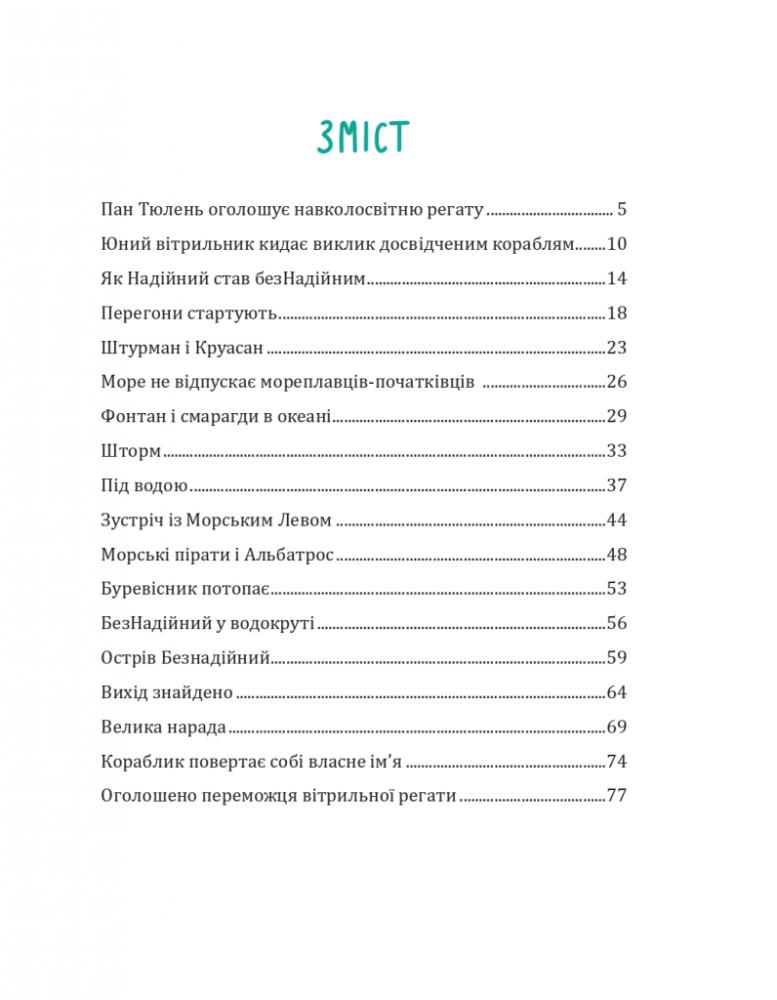 У Дивопорту оголошена стоденна спортивна регата. Змагатимуться досвідчені вітрильники і… боязкий, непоказний кораблик на ім’я Надійний. Жартома, а може, й злостиво, його називають безНадійним! Що ж тепер чекатиме на нього в бурхливому океані, далеко від затишної бухти? Відомо ж: долю корабля визначає його назва! Важкими виявляться перегони для недосвідченого вітрильника і його команди, песика та мавпочки. Але якщо ти не втрачаєш надії й за найскрутніших обставин виявляєш сміливість і винахідливість, то не страшні тобі ані бурі, ані гігантські водокрути, ані зажерливі пірати, ані навіть те, що бундючні суперники не сприймають тебе серйозно…