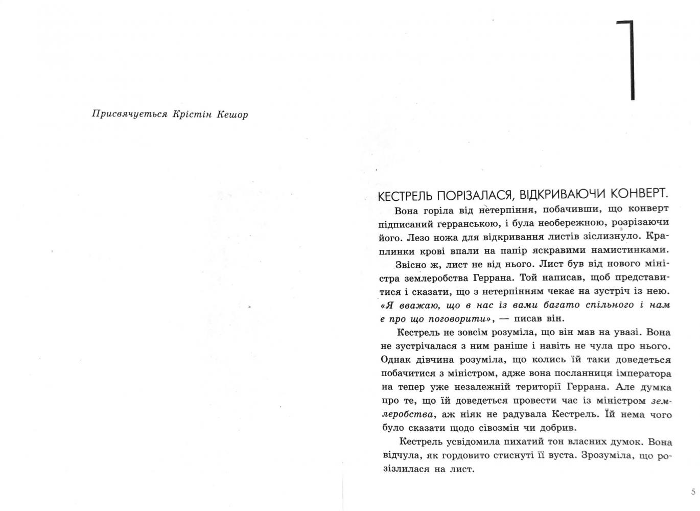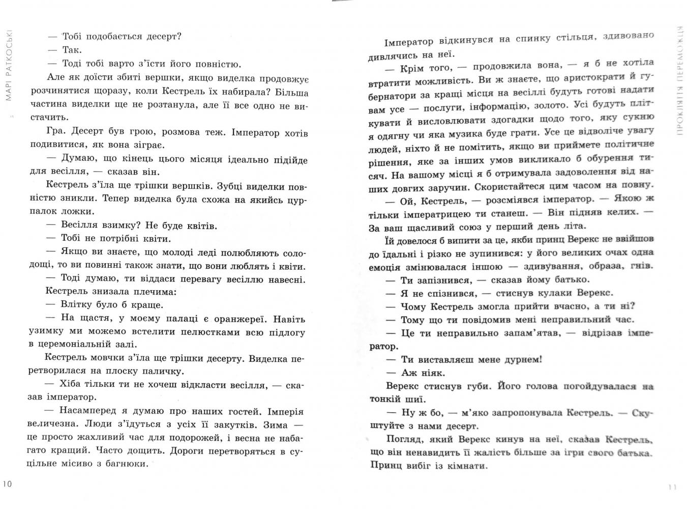 Кестрель і Арін зробили вибір — зрадили кохання, щоб добитися миру для власних держав. Однак змиритися із втратою коханої людини виявилось не так легко. Що ближче дата весілля, то сильніше бажання Кестрель розповісти Аріну правду про свої заручини. Якби ж тільки вона могла йому довірятися... Натомість Арін відчуває, что Кестрель щось приховує. Але всі його спроби дізнатися завершуються болем: Кестрель майстерно видає брехню за правду.
