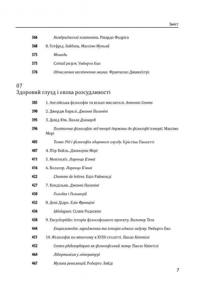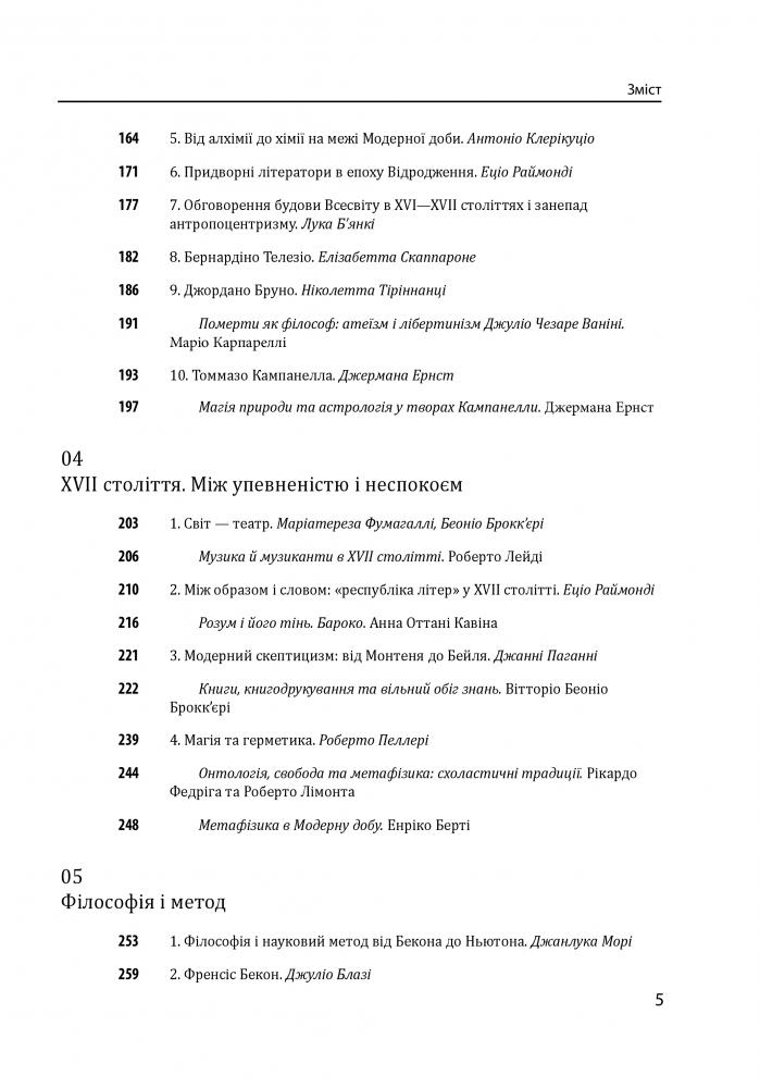 Книга «Історія філософії. Модерна доба» — це велика енциклопедія, що висвітлює історію філософських концепцій від XV до XVIII століття. Нонфікшн створений групою провідних науковців під керівництвом упорядників видання — італійських мислителів Умберто Еко та Рікардо Федріги. Дослідження зосереджується на розвитку низки метафізичних доктрин, які формувалися під впливом епохи Відродження, протестантської Реформації та доби Просвітництва. Колектив авторів детально описує процес зародження Модерну й тлумачить сутність парадигм та ідеологічних теорій визначних філософів. З цією книгою читачі вирушать у наукову розвідку, яка дозволить глибше пізнати інтелектуальні концепції, що виникали за життя Марсіліо Фічіно й трансформувалися до часів Іммануїла Канта.Зародження філософських ідей гуманізмуКолектив науковців розпочинає знайомство з високою наукою, занурюючи в основи знання про безмежну природу буття. Енциклопедисти розповідають, що стало підґрунтям для розвитку ідеологічних доктрин: науковці висвітлюють роль астрології, алхімії, окультизму й магії в контексті формування засад філософії. Відтак читачі, озброєні відомостями про «закономірності всього реального», починають досліджувати становлення концепції гуманізму. Нова доктрина, яка транслює взаємозвʼязок між людиною та божественним, спричинила наукове відродження, що фокусується на утопічному мисленні. Автори змістовно та без надлишкової складної лексики пояснюють загальні принципи соціальної філософії. Вони використовують метод універсальності й доступності викладу інформації, щоб детально розповісти про розвиток антропоцентризму, а також про історичних постатей, які пропагували цю ідеологію. Відтак енциклопедія відзначається унікальним підходом, що дозволяє читачам із будь-яким рівнем знань адаптуватися до інтелектуального дискурсу.Занепад антропоцентризму в епоху розсудливостіКоли відбулося послаблення гуманістичної парадигми, то світові мислителі захопилися ідеями натурфілософії. Постать людини вийшла за кордони метафізичного канону: особистість стала не центром світу, а однією з його частин. У колі просвітництва зріс інтерес до природи матерії — і схоластичну метафізику замінили епістемологічні рефлексії та критичне мислення. Раціоналістська філософія підірвала теорії низки гуманістичних ідей, відкривши простір для зародження доктрин, що концентрувалися на дослідженні ролі особистості у Всесвіті. Авторський колектив також виділяє парадигму нової метафізики, яка транслює концепцію відмови від абсолютних істин. У цьому контексті яскраво прослідковуються принципи політичної філософії, естетики й різноманітності традицій. Реальність вийшла за «канонічні» межі її пізнання, що відбиває модерне розуміння світу, людини та суспільства. Пропонуємо купити «Історія філософії. Модерна доба», щоб проаналізувати становлення високої науки, яка століттями розпалювала інтелектуальні дискусії між визначними мислителями.