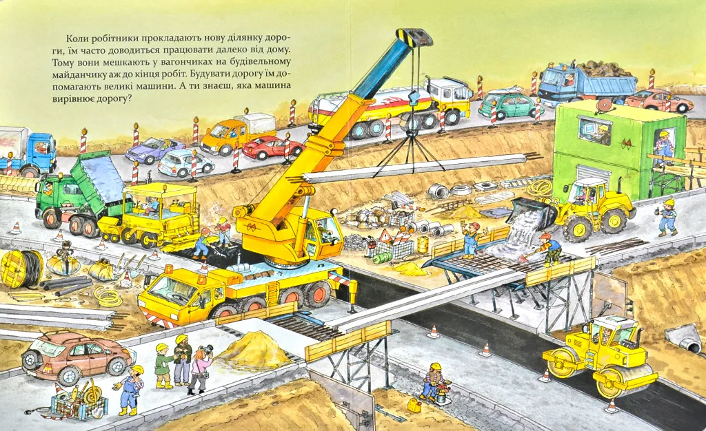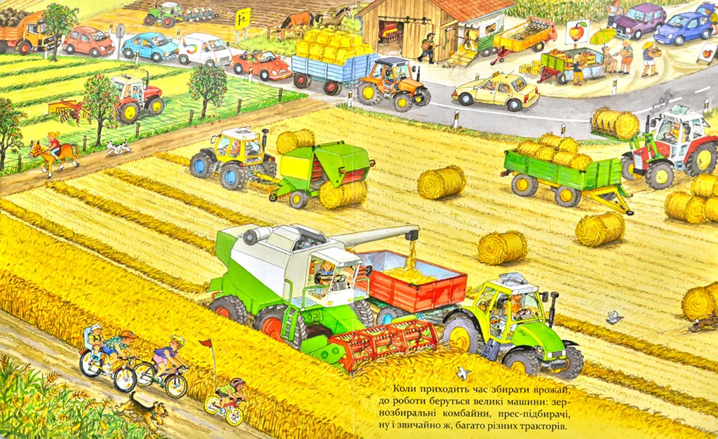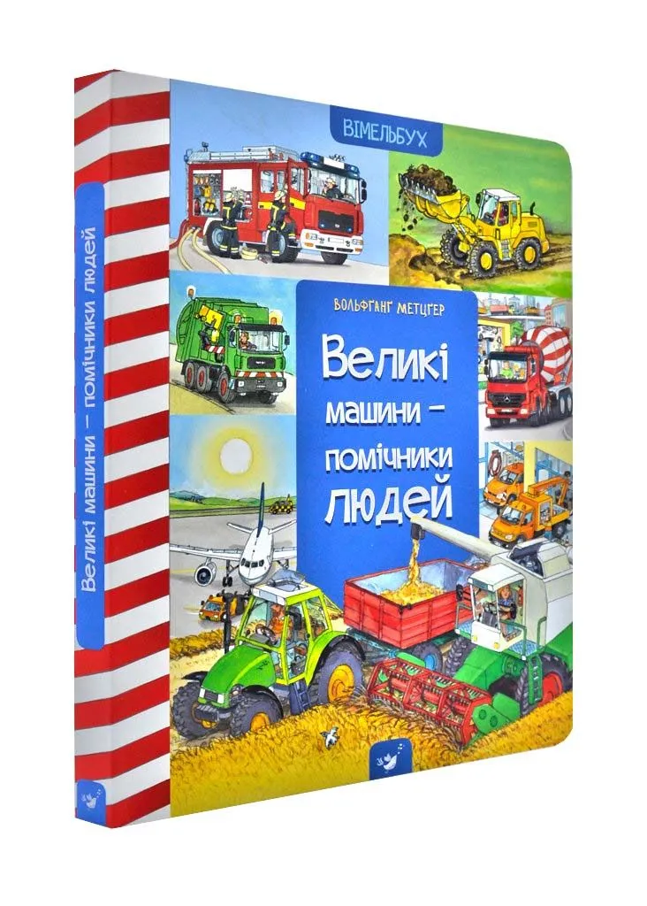 Мерехтливі книжки — вімельбухи з’явилися у Німеччині наприкінці 1960-х і швидко здобули прихильність батьків і малюків багатьох країн. Надзвичайно детальні малюнки знайомлять дитину з навколишнім світом, розвивають мовлення й уяву. Вімельбух — книжка №1 для малюка від народження до шкільного віку. Яскрава книжка Великі машини — помічники людей покаже і розкаже маленьким читачам багато цікавого по сільськогосподарські, будівельні, пожежні та інші машини.Тут не лише захопливі історії та цікаві пояснення на тему транспортних засобів, а й море задоволення та розваг. Це книга про машини, у якій є все, чого бажають маленькі діти.Розмір 23 х 28 х 2,5 см